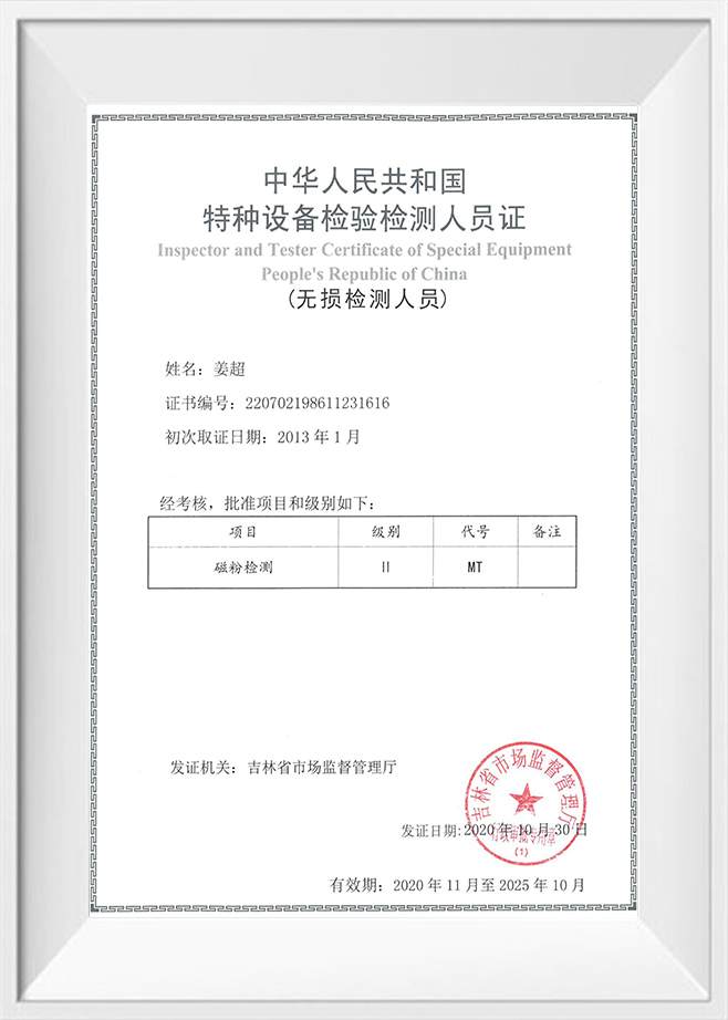 Müfettiş ve Tester Özel Ekipman Sertifikası Çin Cumhuriyeti Halk Cumhuriyeti